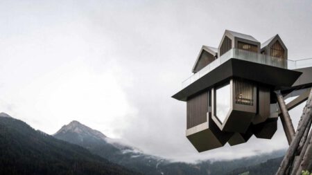 Die Architekten von noa* haben das Alpenhotel Hubertus in Südtirol um einen Wellnessbereich erweitert, der unter dem Titel Hub of Huts die Welt auf den Kopf stellt …