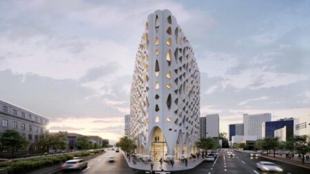 In der Innenstadt von Denver entsteht das Hotel Populus. Auffällig sind sein dreieckiger Grundriss und die an eine Zitterpappel erinnernde Fassade. Außerdem soll es das erste Energie-positive Hotel der USA werden.