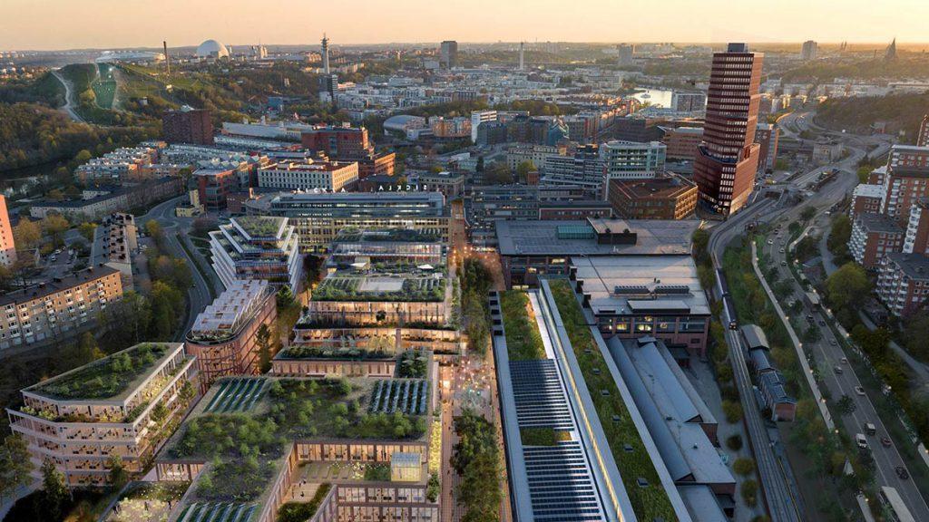 When Roald Amundsen reached Antarctica in 1911 with his expedition ship and won the race to the South Pole, the ship was equipped with diesel engines from the Atlas Copco plant in Sickla. The industrial district southeast of Stockholm’s city center developed into an important industrial location in the 19th century with the expansion of the regional rail network. A good century later, a new transformation is beginning. Step by step, Sickla is developing from a former industrial to a residential and working district. The developer Atrium Ljungberg has transformed old brick buildings and is now planning an entire city made of wood together with the architecture firms Henning Larsen and White Arkitekter.