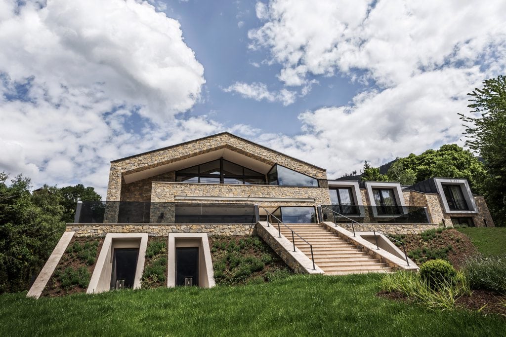Sanft schmiegen sich die 2018 fertiggestellten Eva Hof Lakeside Suites ans Ostufer des Zeller Sees. Vorwiegend aus beigem bis ocker-farbigem Stein erbaut, strahlen sie die Eleganz der zeitgemäßen Version eines noblen englischen Landsitzes aus.