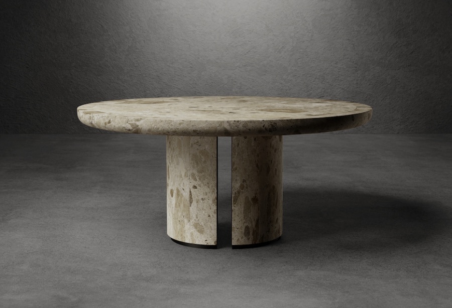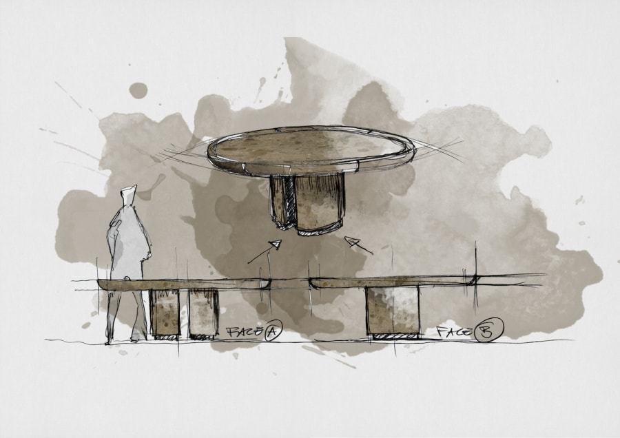 Conceived, designed and built entirely in Italy, For No One – available in round and large versions – transmits the monumentality and primitive strength of a millenary and resistant material, shaped for centuries by geological processes that today undergo processes that act intrinsically on its structure. The textures and nuances, enhanced by complex artisanal techniques that excavate the stone, bring it back to its truthfulness, perfectly intertwined with the use of cutting-edge technologies, returning the idea that each block carries the weight of countless eras, silent witnesses of a unique history, in continuous evolution.