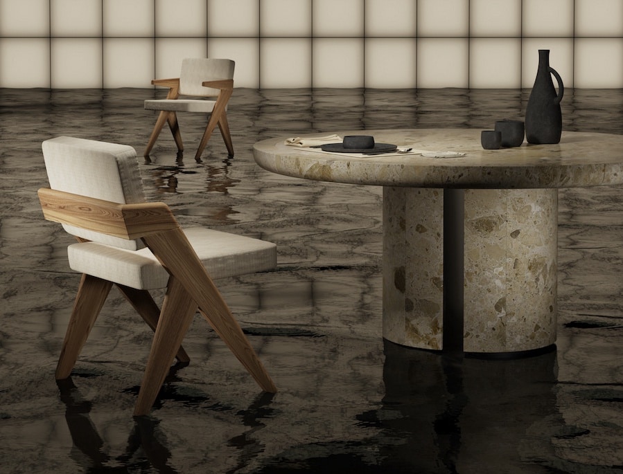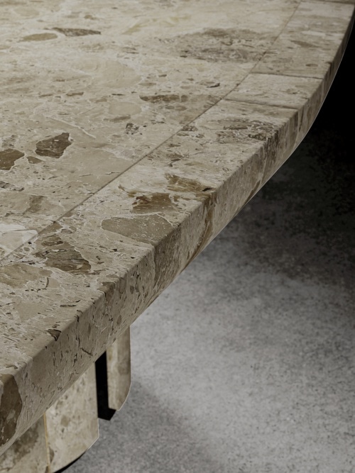 If for Gio Pagani the beauty of a material lies precisely in its history, for the For No Table the choice of material also embodies a tribute to the tradition of the masters. The Ambrosia marble grain from which it is made has a warm and earthy chromatic texture between chestnut, grey and cream, whose origins refer to the Ceppo di Grao, a stone that contributed to the greatness of Milan between the two wars, beloved by designers such as Piero Portaluppi. Added to this are the work, mastery and sensitivity of Italian craftsmen, able to recognise the traces and the way history and time change the surfaces of the stones, woods, buildings and architectural environment that pollute the city, which become an added value for GIOPAGANI to create products that know how to confuse time.