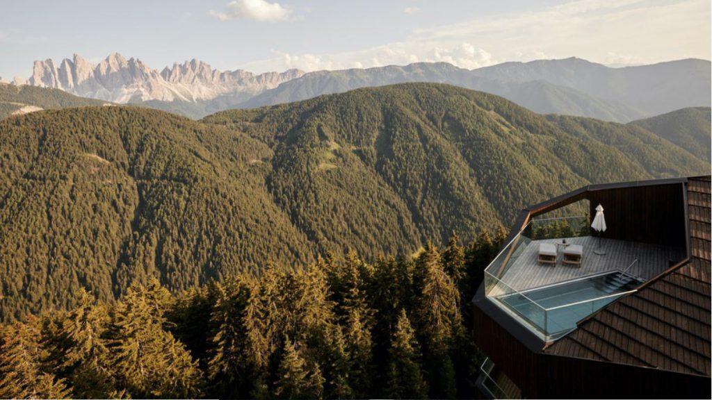 Das Hideaway mit 62 Suiten und Zimmern liegt in den Dolomiten auf 1.800 Metern. Es ist allein schon aufgrund der atemberaubenden Lage ein unvergleichliches Gebäude. Und es ist ein Rückzugsort in der Natur, an dem die Zeit wieder spürbar wird, heißt es in Testimonials auf entsprechenden Buchungsseiten. Es rufe bei den Menschen emotional besetzte Werte wie „körperliche und geistige Achtsamkeit” hervor.