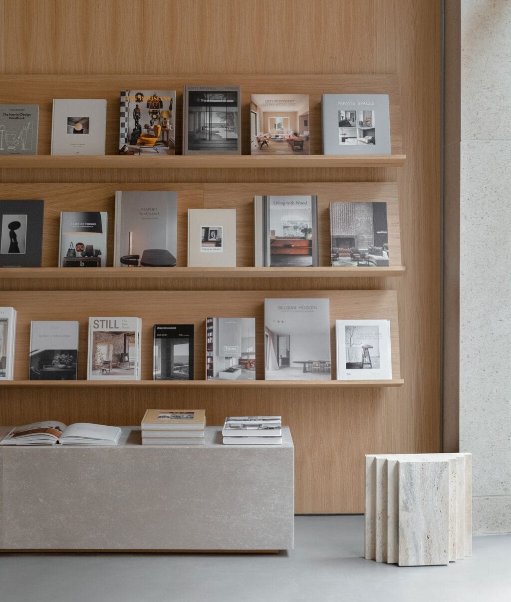 Ein anregendes Zusammenspiel von Materialität, Form und Funktion schafft diesen dynamischen Raum, der die Essenz der Marke New Mags aufgreift und gleichzeitig die Protagonisten des Raums – die verschiedenen Bildbände – in einem warmen Ambiente mit Raum für Kontemplation inmitten einzigartiger Kunstwerke präsentiert.