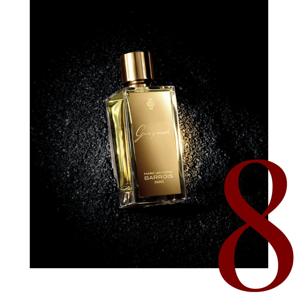 Die gesamte Duft-Komposition spielt mit Kontrasten und Gegensätzen. Eine Duftreise in eine neue imaginäre Welt der Eleganz. Ganymede ist ein betörendes Parfum, das über eine außergewöhnlich lange Sillage verfügt. Wenn man alles auf ein Bild reduzieren könnte, wäre es ein Kompass: Norden für die spritzige Lebendigkeit der Mandarine, auf die der Süden mit der Immortelle antworten und diesen Duftrahmen unterstreichen würde, die Dichte der Wildledernoten im Westen würde die subtile und zarte Blumigkeit des Veilchen im Osten ausbalancieren. Das sind die vier Richtungen der Parfumreise zu einer neuen imaginären Welt und zu neuen Codes der Eleganz.