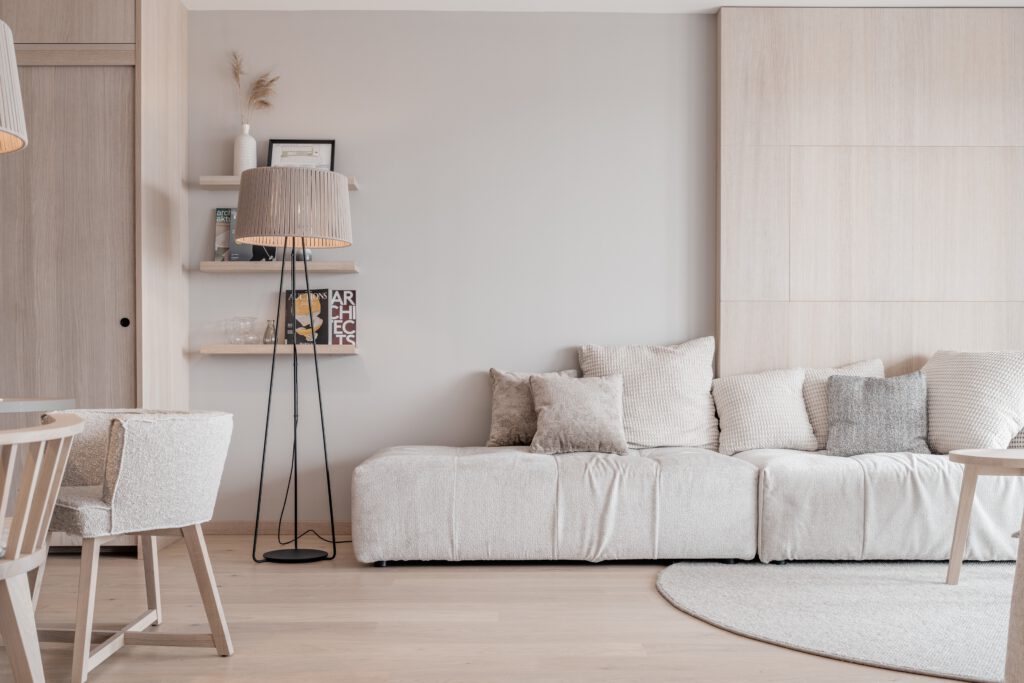Farben: Kontraste sind wichtig, doch ein reduziertes, harmonisches Ton-in-Ton-Konzept ist der wahre Schlüssel zum Wohlfühlen. Wählen Sie dabei nicht nur ein und dieselbe Farbe, sondern spielen Sie mit der gesamten Bandbreite der Farbfamilie. Das beste Beispiel: Sofas mit Bezügen, Pölstern und Decken in unterschiedlichen Schattierungen und Texturen.