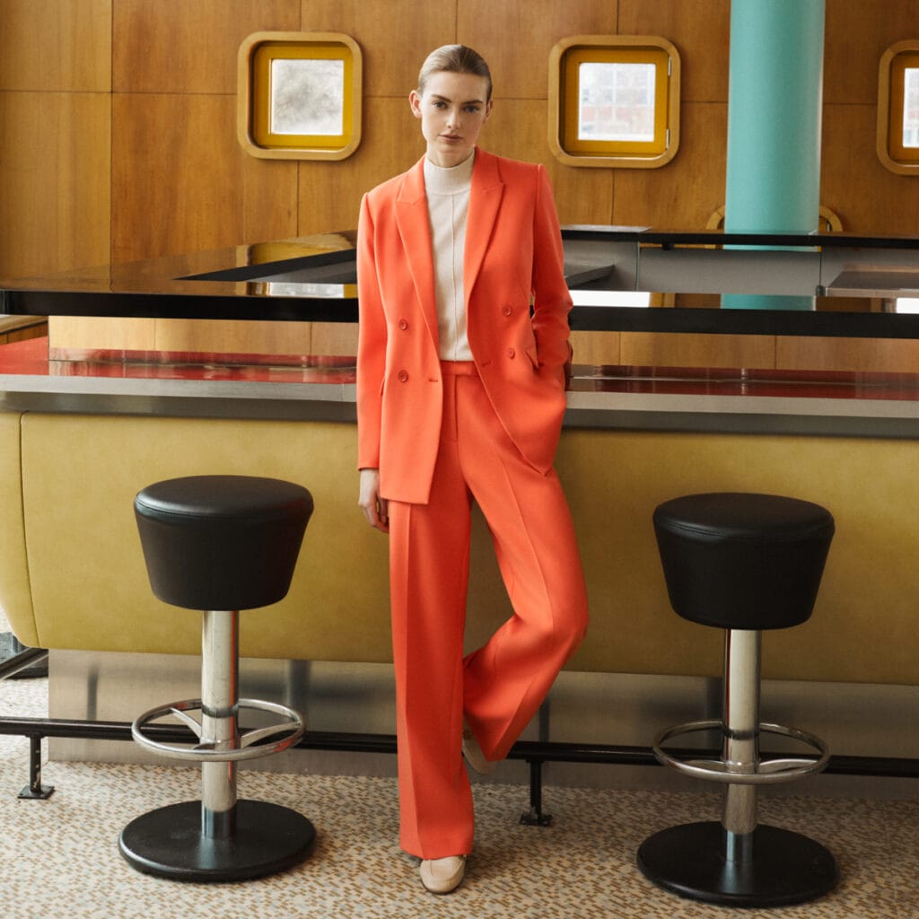 The comma trend pieces are absolutely in the fashionable style of the Pantone color of the year. Whether as a suit or in combination with a knitted turtleneck – they are versatile. For those who like it a little more discreet, the peach-colored hood is the perfect choice.