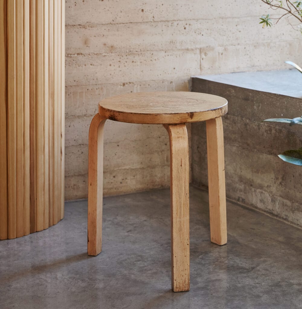 Designt vom finnischen Architelt Alvar Aalto hat sich der Hocker aller Hocker bis heute millionenfach verkauft nicht zuletzt wegen seiner simplen Designsprache und praktischen Handhabung (unter anderem lässt er sich problemlos stapeln).